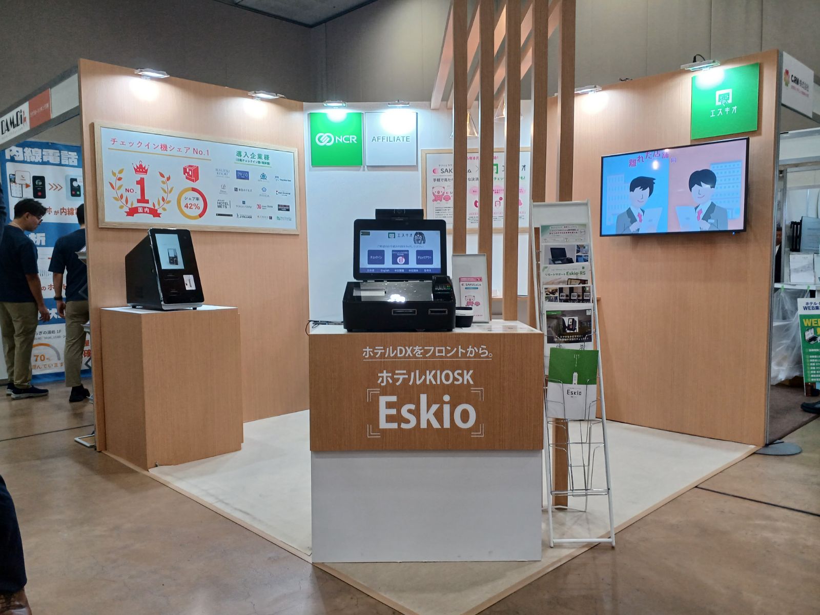ブースでは、弊社のホテル様向けセルフチェックインシステム「Eskio(エスキオ)」を展示いたしました。